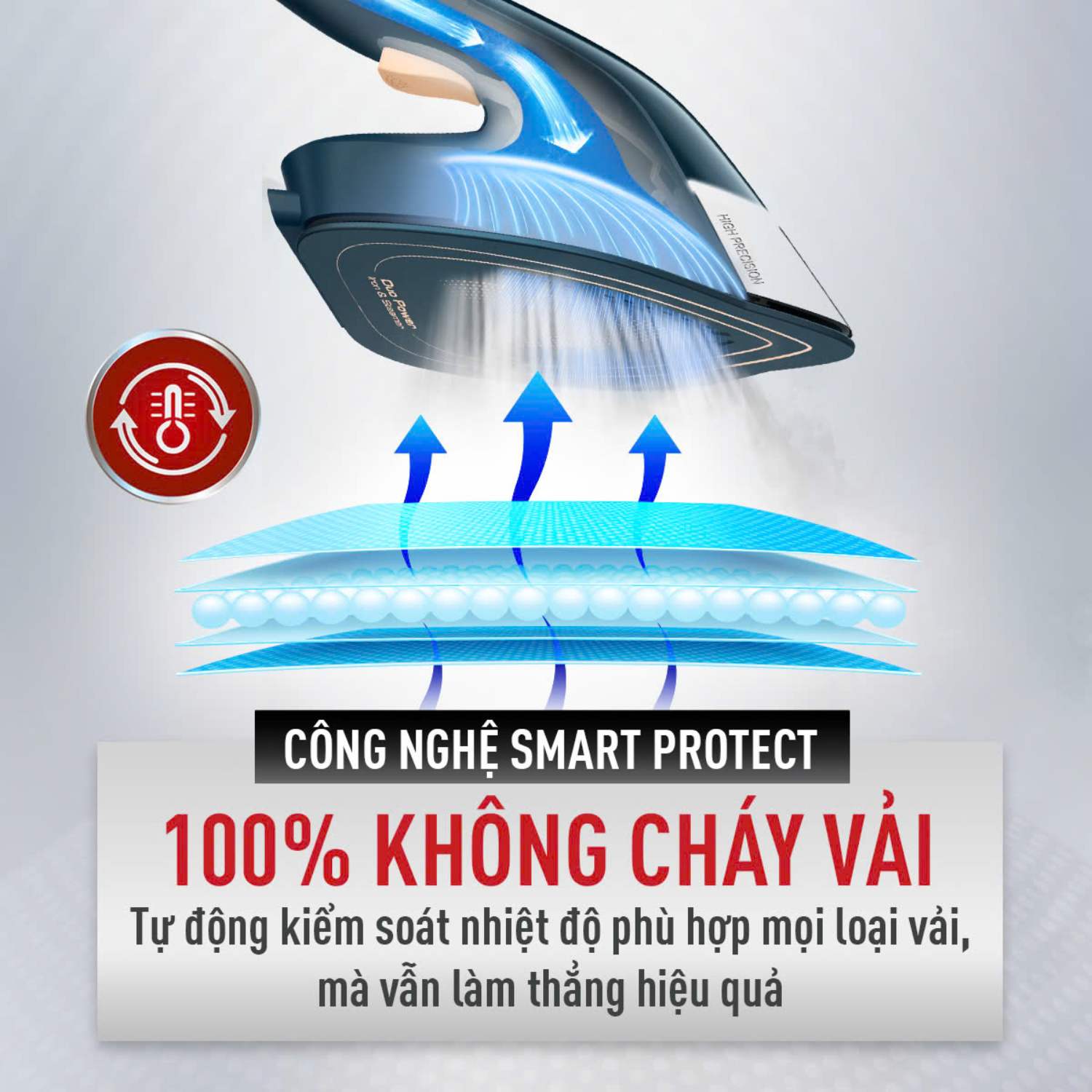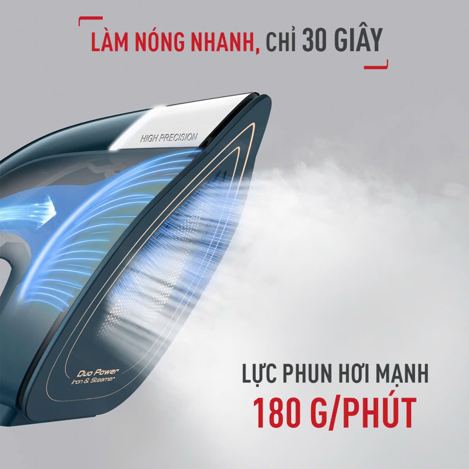 - Công suất mạnh mẽ 1550-1850W tạo ra lượng hơi nước phun liên tục 25 g/phút giúp làm phẳng nhanh mọi nếp nhăn cứng đầu.