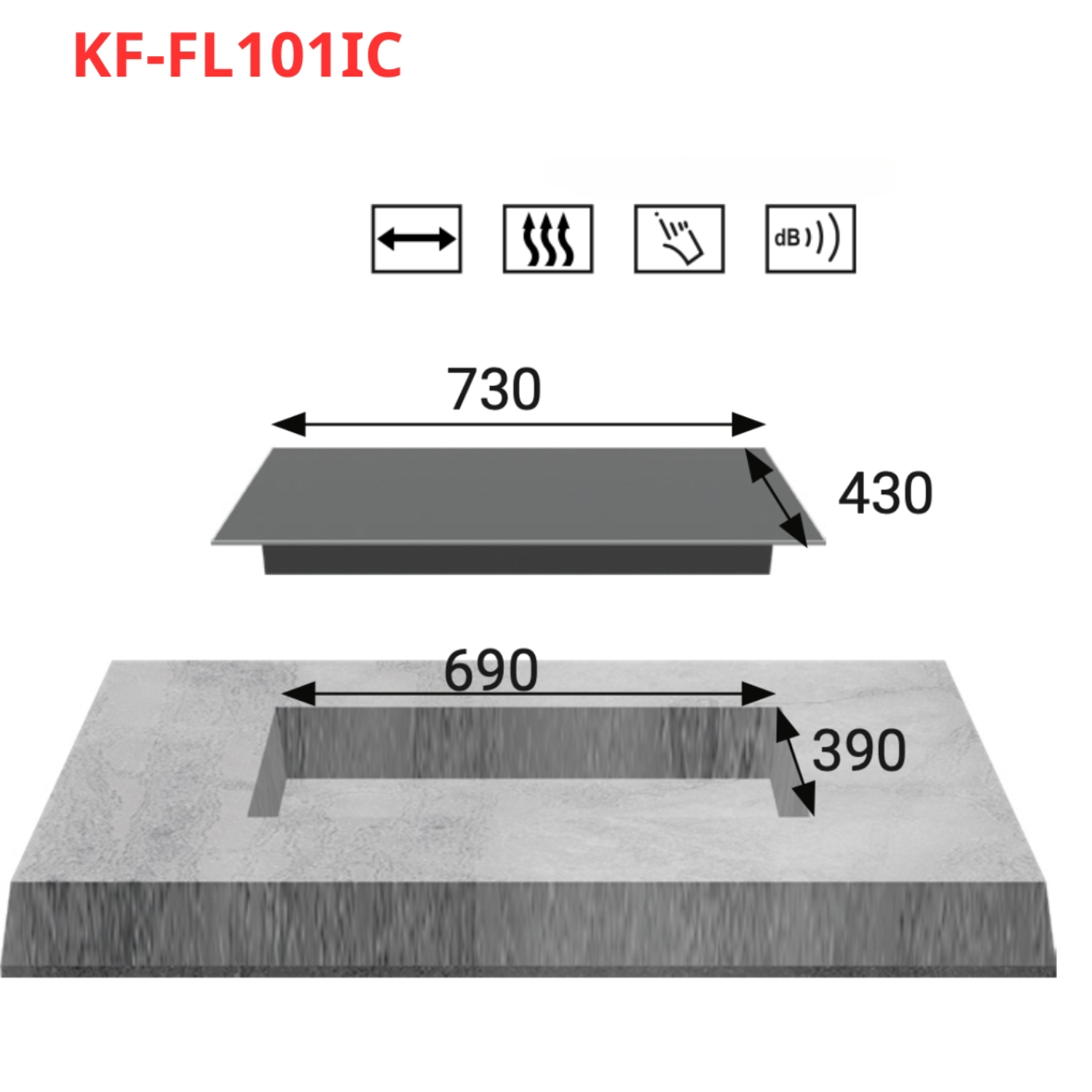 - Kích thước mặt bếp: 730 x 430 mm