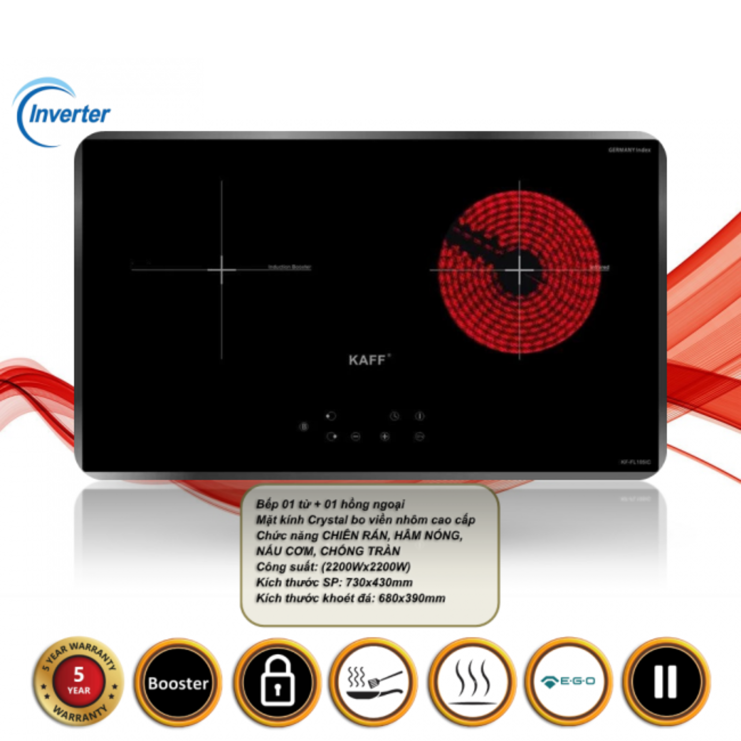 Bếp từ hồng ngoại Kaff KF-FL105IC là sự lựa chọn hoàn hảo cho gia đình hiện đại muốn sở hữu sản phẩm bếp đôi đa năng, dễ sử dụng, tiết kiệm điện năng và có kiểu dáng sang trọng. Sản phẩm giúp nâng cao hiệu quả nấu nướng, tối ưu không gian bếp và đem lại trải nghiệm nấu ăn tiện lợi, an toàn.