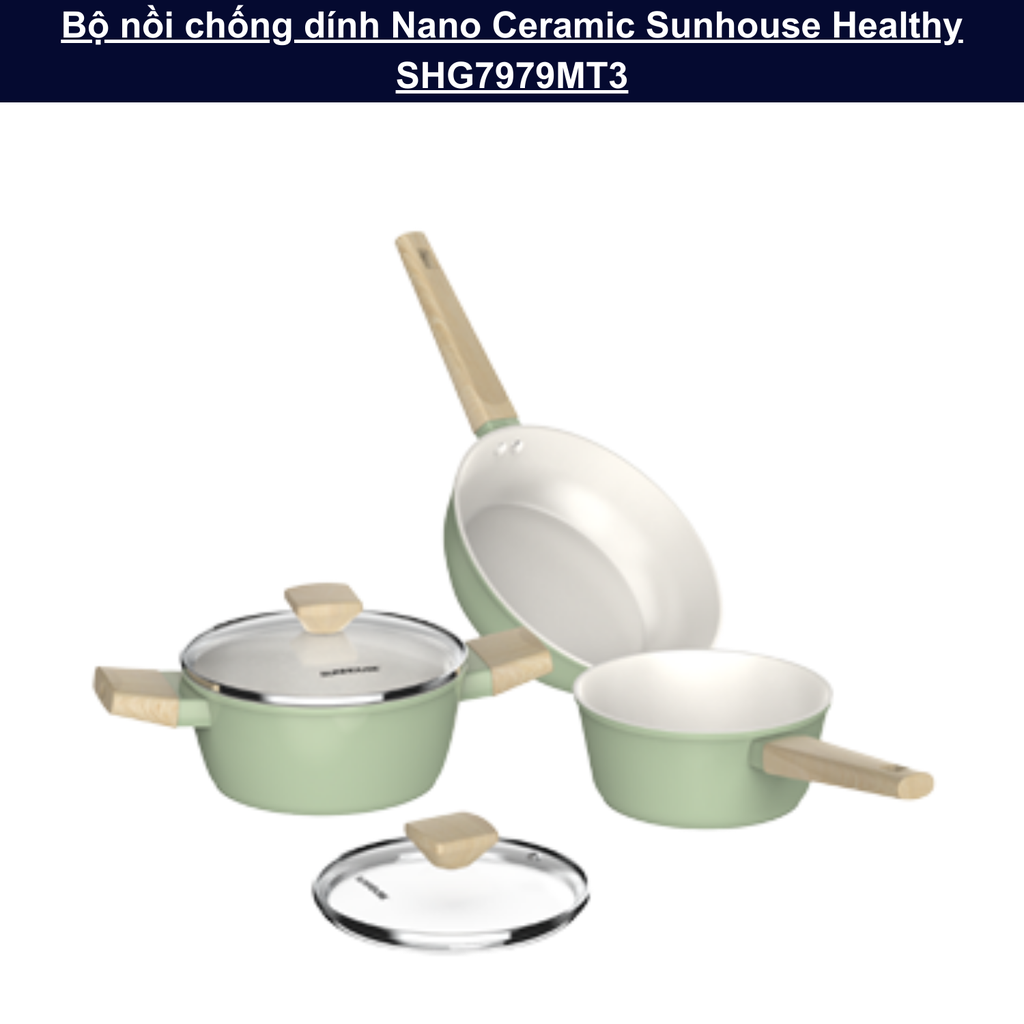 Bộ nồi chống dính Nano Ceramic Sunhouse Healthy SHG7979MT3