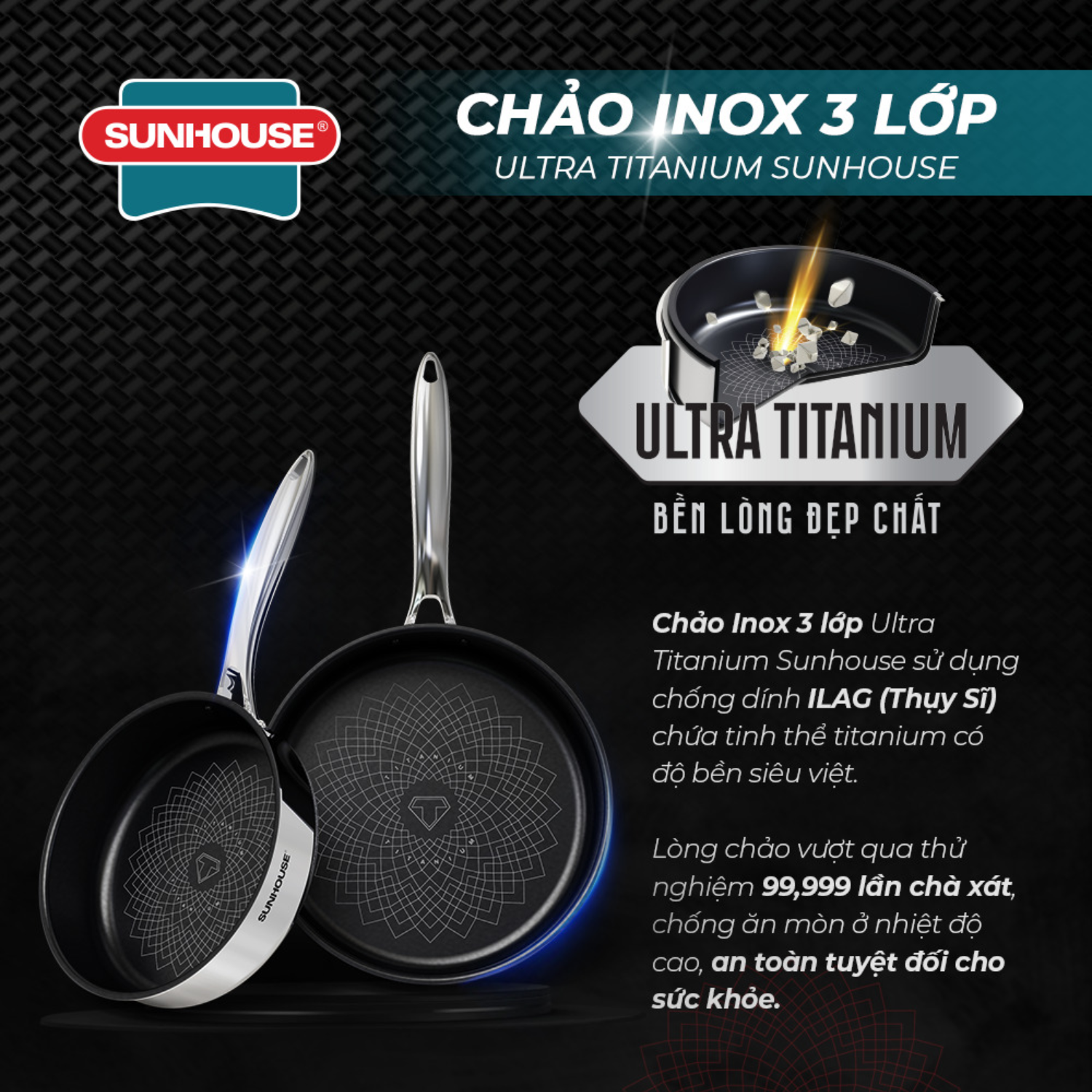 GRAND OPENING - Chảo Inox 3 lớp Ultra Titanium Sunhouse STI22M