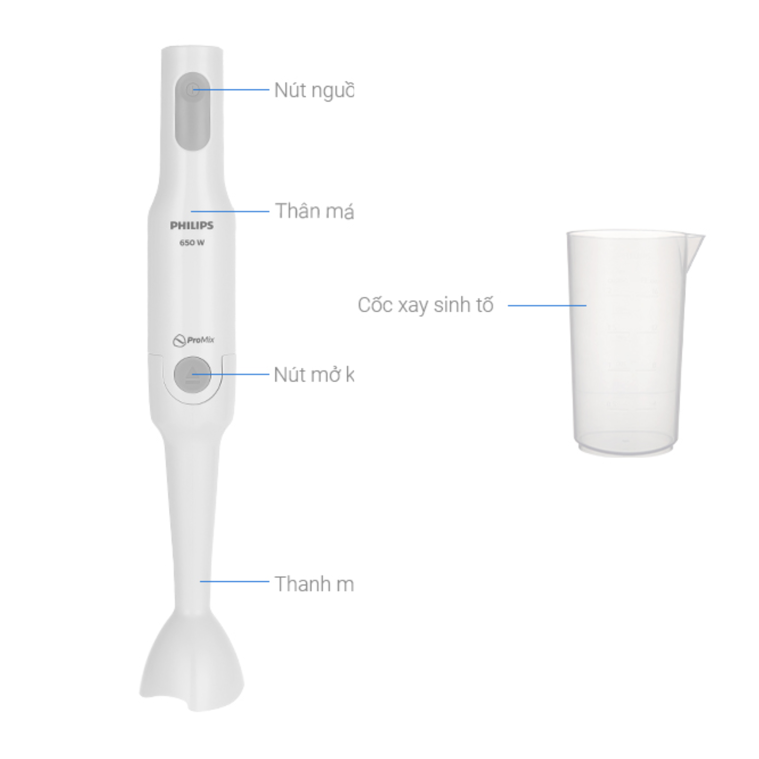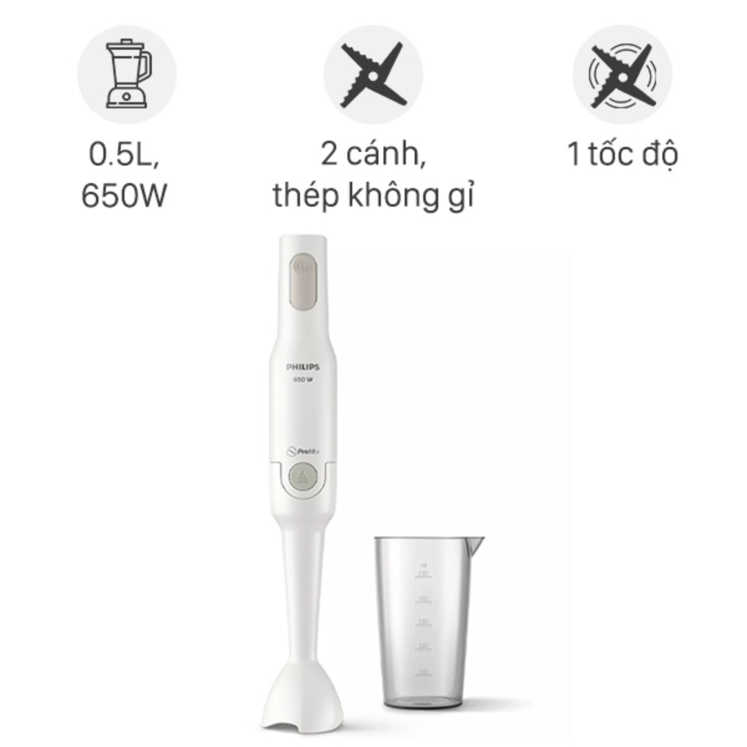 Máy xay sinh tố cầm tay Philips HR2531/00 sở hữu động cơ 650W mạnh mẽ, giúp xay nhuyễn cháo, sinh tố, thịt, hạt một cách nhanh chóng và hiệu quả. Công nghệ ProMix với đầu xay tam giác tối ưu dòng thực phẩm, đảm bảo hiệu suất xay cao mà vẫn bảo vệ lưỡi dao khỏi hao mòn. Lưỡi dao chữ S bằng thép không gỉ sắc bén, cho kết quả xay mịn và an toàn cho sức khỏe. Đầu xay dạng gợn sóng đặc biệt, hạn chế tối đa tình trạng bắn thực phẩm ra ngoài khi thao tác.