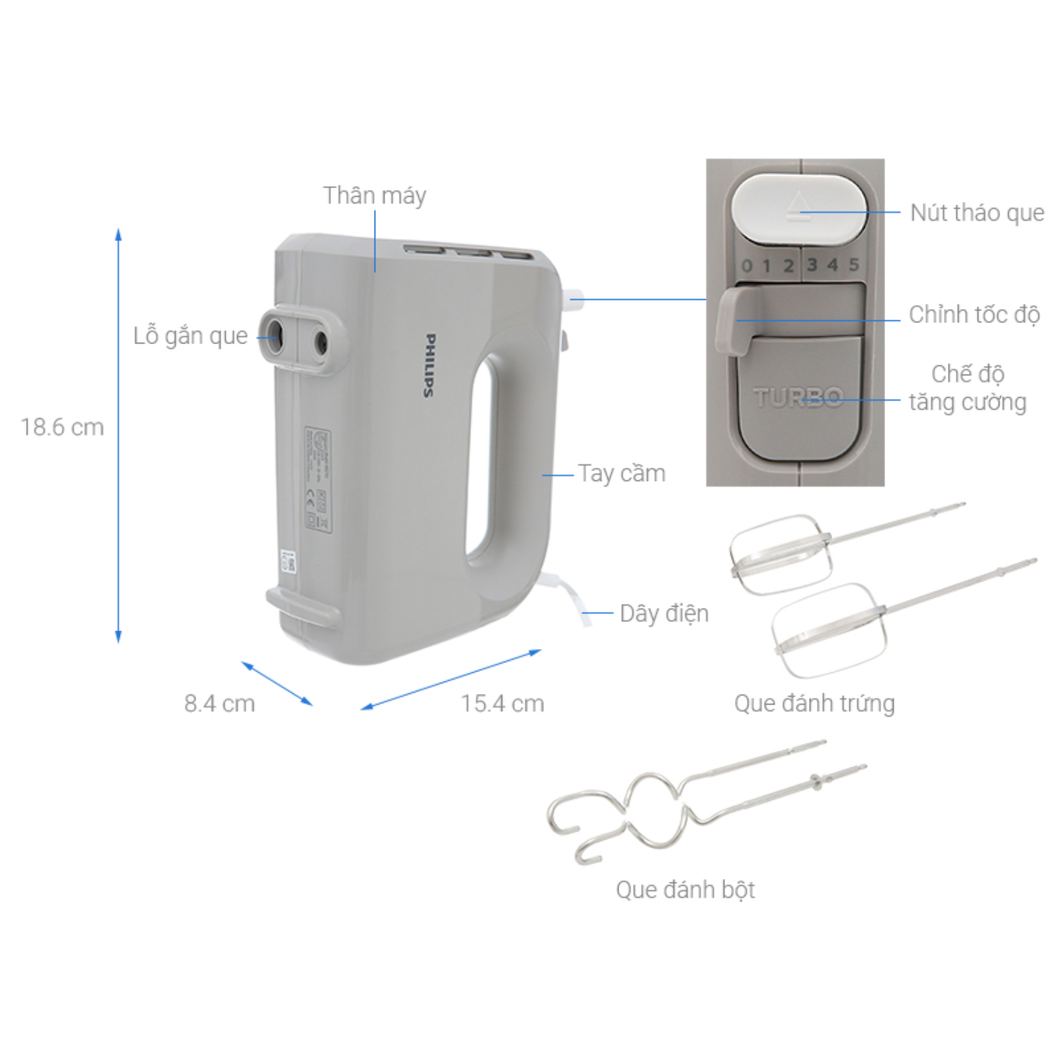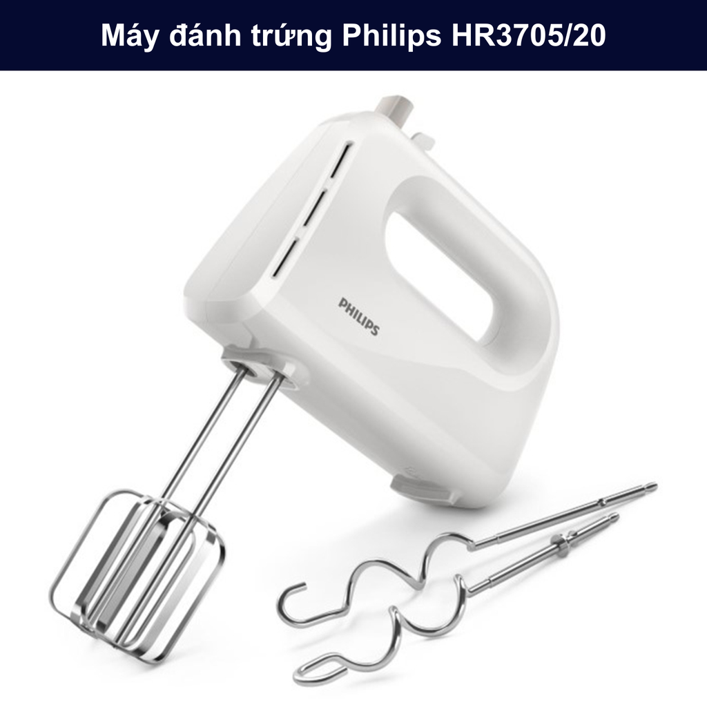 Máy đánh trứng Philips HR3705/20 – Giải pháp đánh trứng, trộn bột nhanh, tiện lợi và an toàn cho mọi gia đình hiện đại.