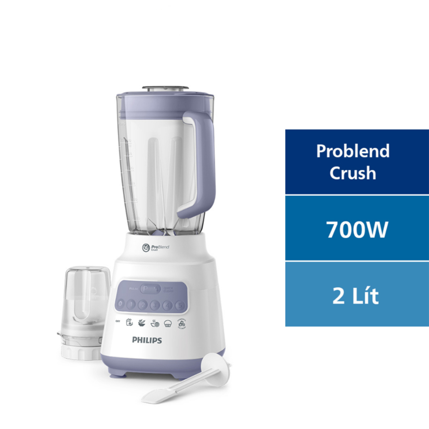 Máy xay sinh tố Philips HR2221/00 là thiết bị lý tưởng cho gia đình với động cơ 350W kết hợp công nghệ ProBlend Crush giúp xay nhanh và mịn thực phẩm một cách hiệu quả. Cối xay dung tích lớn 2 lít, đáp ứng thoải mái nhu cầu sử dụng cho nhiều người. Máy có 5 tốc độ xay và nút Ice-Crush chuyên dụng giúp nghiền đá mịn gấp 2 lần, tạo nên những ly sinh tố đá bào thơm ngon, mát lạnh.