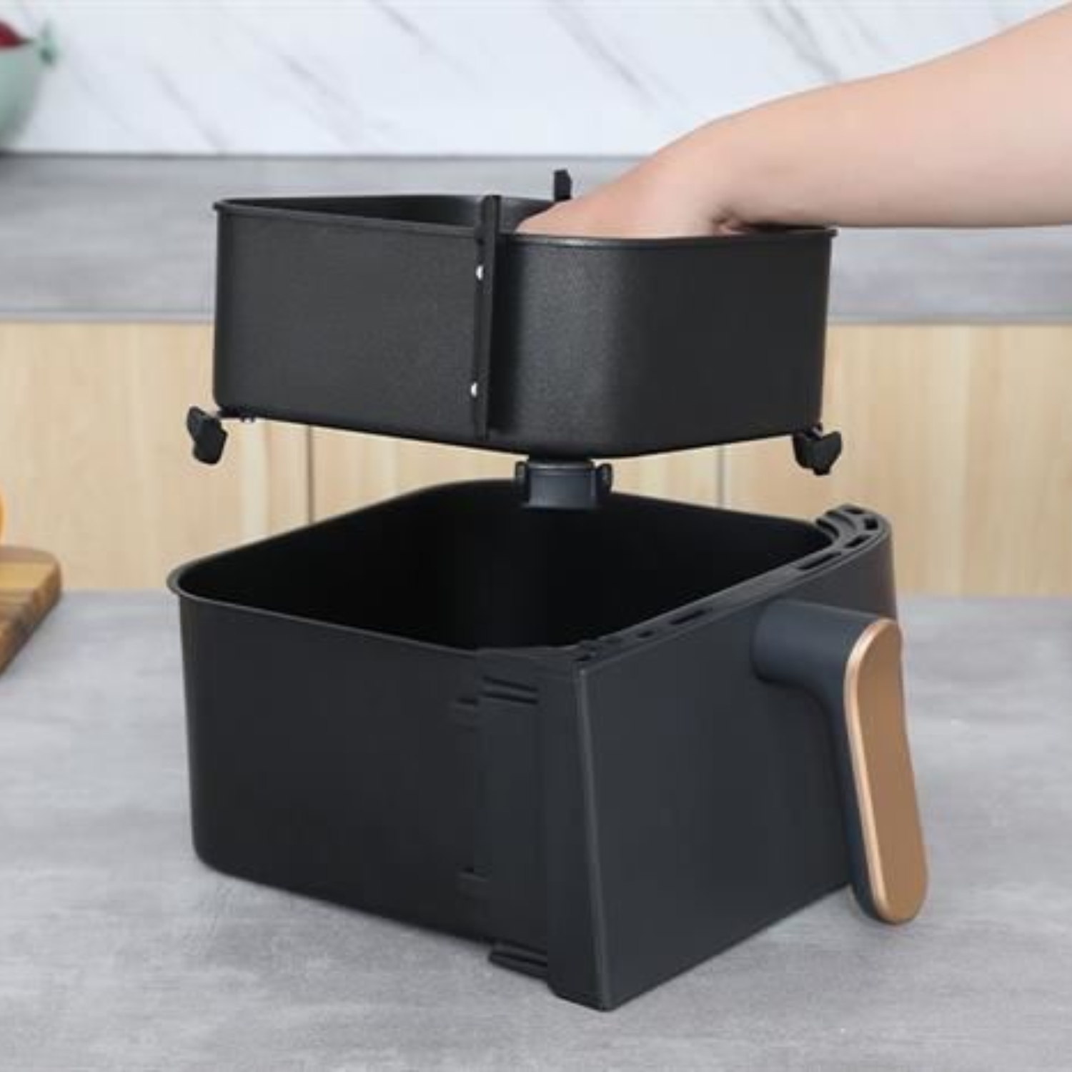 Với công suất hoạt động lên tới 2750W và dung tích 9L, nồi chiên không dầu có khả năng chứa tới 1,5kg bắp cải Brussels trong một lần nấu. Mức dung tích này cho phép bạn chuẩn bị một bữa ăn hoàn chỉnh mà không cần phải lo lắng về việc nấu nướng nhiều lần.