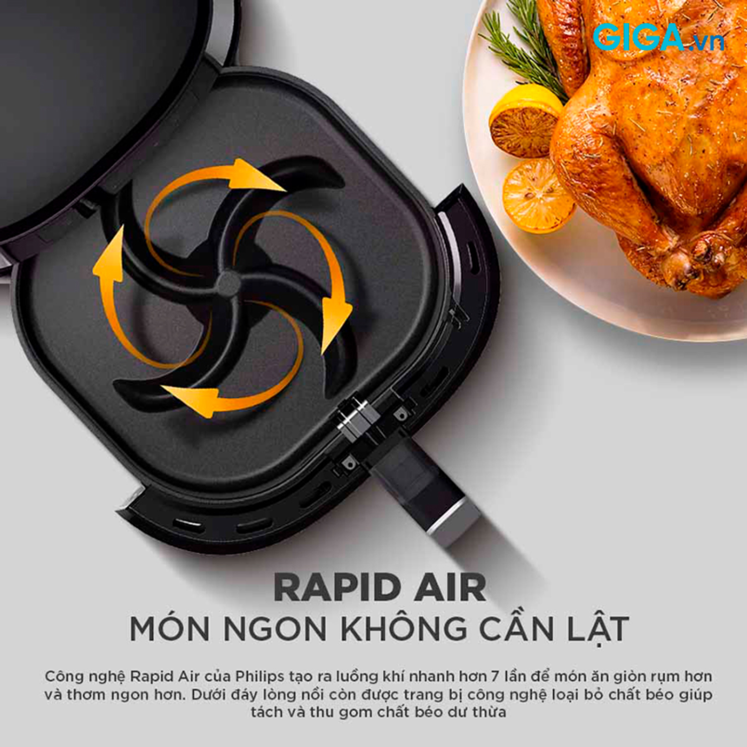 - Công nghệ làm nóng Rapid Air giúp món ăn giòn ngon, ít dầu mỡ.