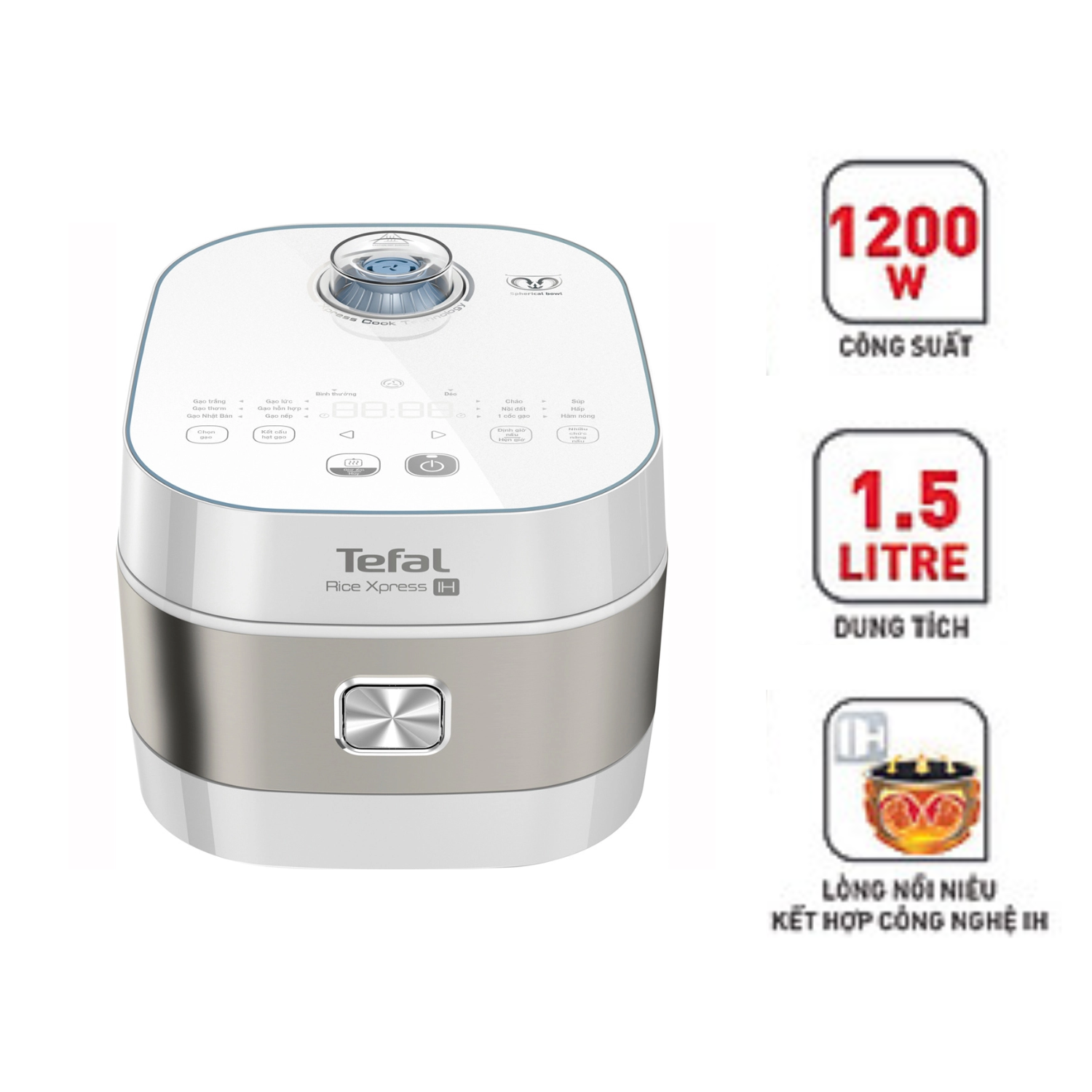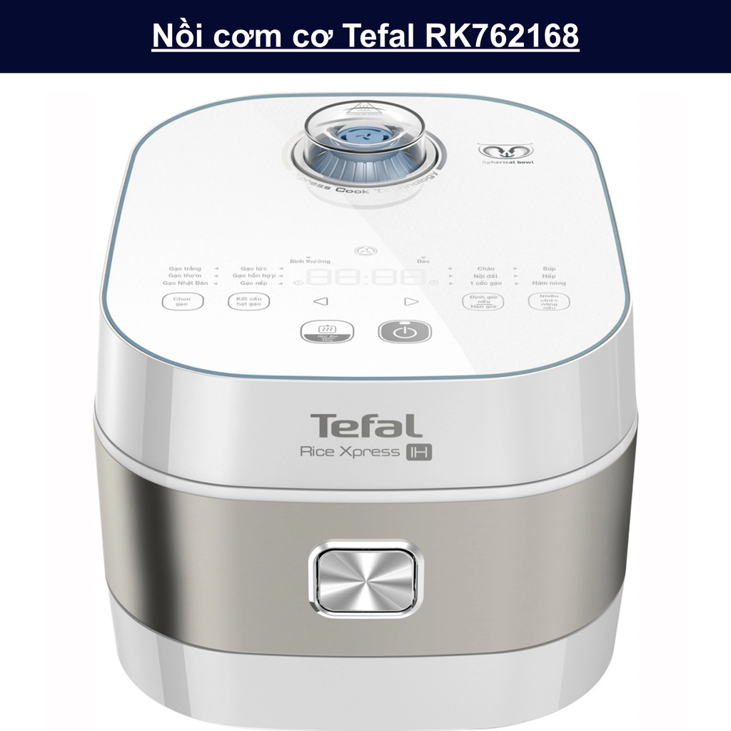Nồi cơm cao tần Tefal RK762168 nổi bật ở khả năng nấu nhanh, cơm chín đều, giữ vị ngon lâu nhờ công nghệ IH và thiết kế lòng nồi hình cầu, rất phù hợp với nhu cầu nấu nướng đa dạng và đảm bảo dinh dưỡng cho gia đình hiện đại.