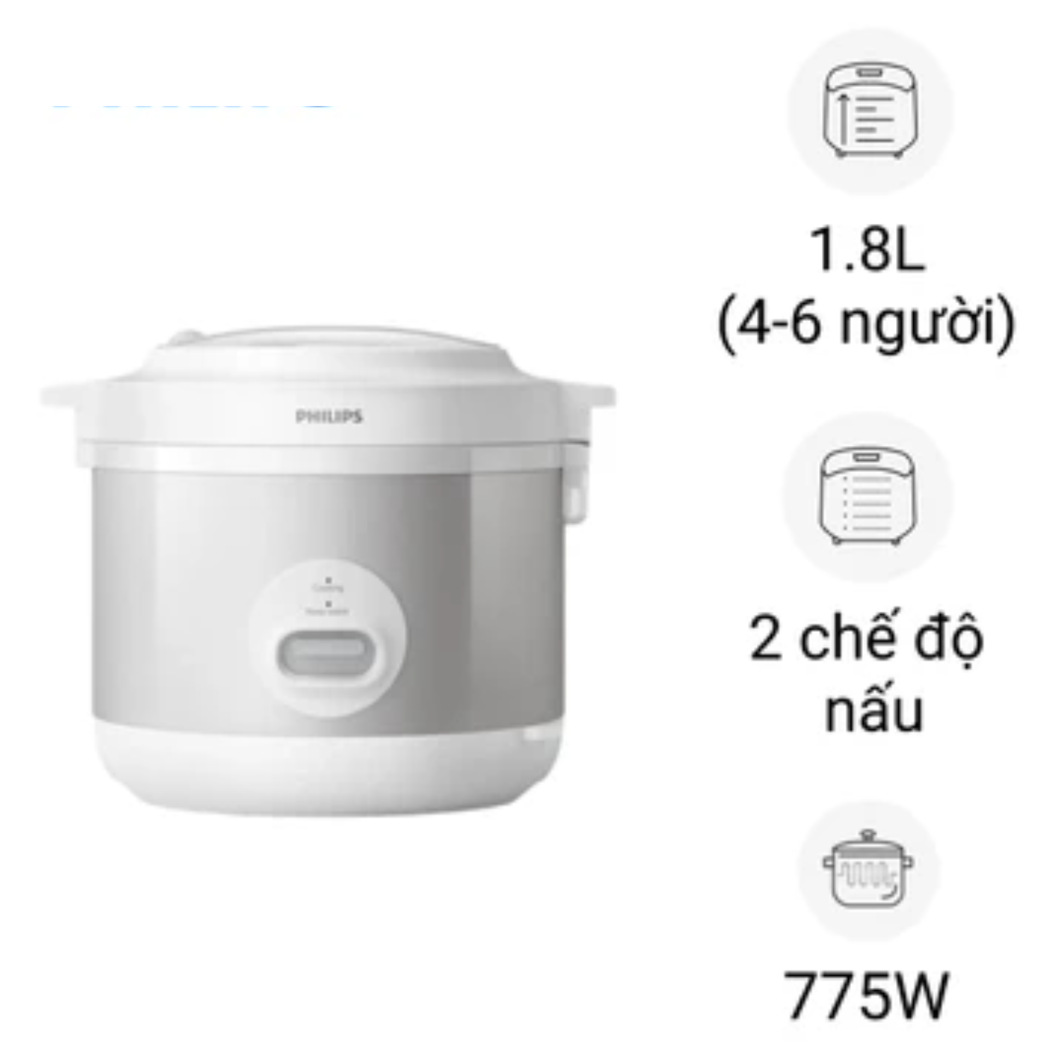- Dung tích: 1.8 lít (nấu được 8-10 chén gạo)