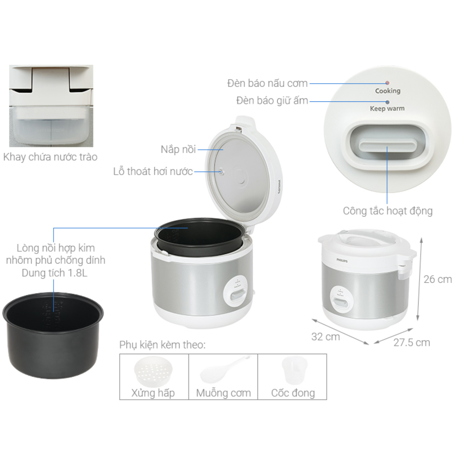 - Phụ kiện: Xửng hấp, muỗng cơm, cốc đong
