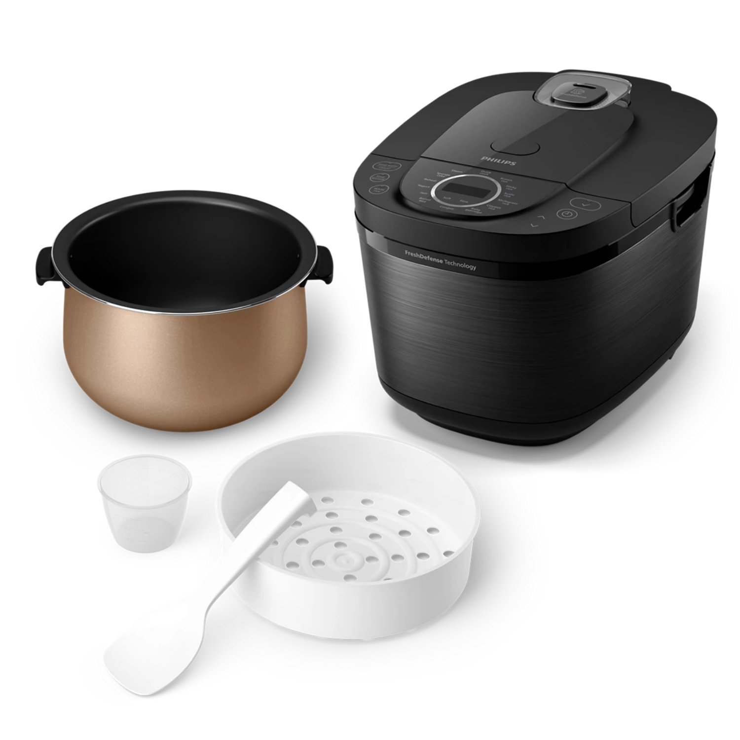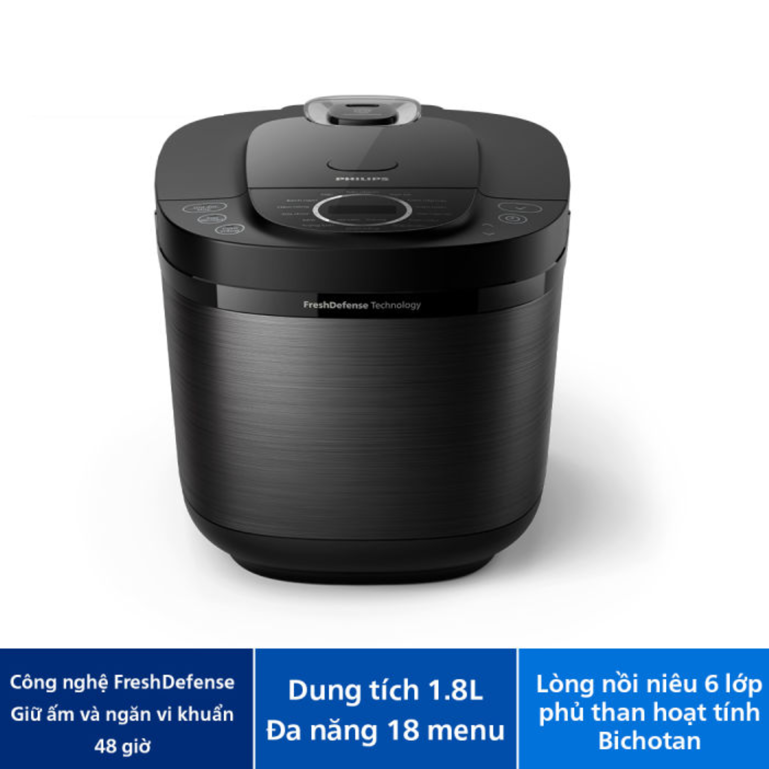- Công nghệ FreshDefense của Philips giúp giữ nhiệt và độ ẩm lý tưởng (63%) cho cơm trong tối đa 48 giờ mà vẫn hạn chế sự phát triển của vi khuẩn.
