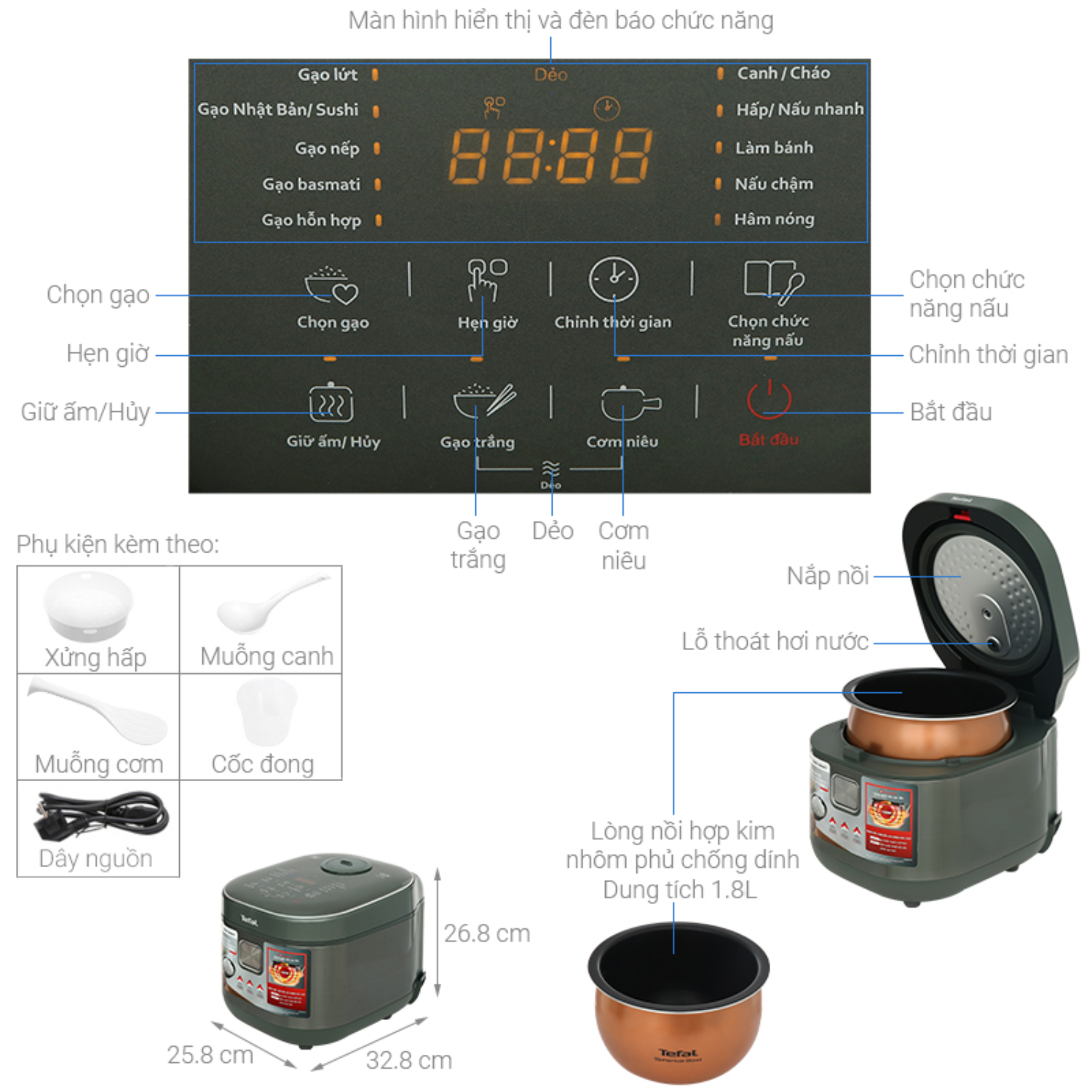 Nồi cơm điện tử cao tần Tefal RK818A68 – Thiết bị nhà bếp thông minh, đa năng, giúp nấu cơm ngon, giữ nhiệt lâu và chế biến nhiều món ăn tiện lợi cho gia đình hiện đại