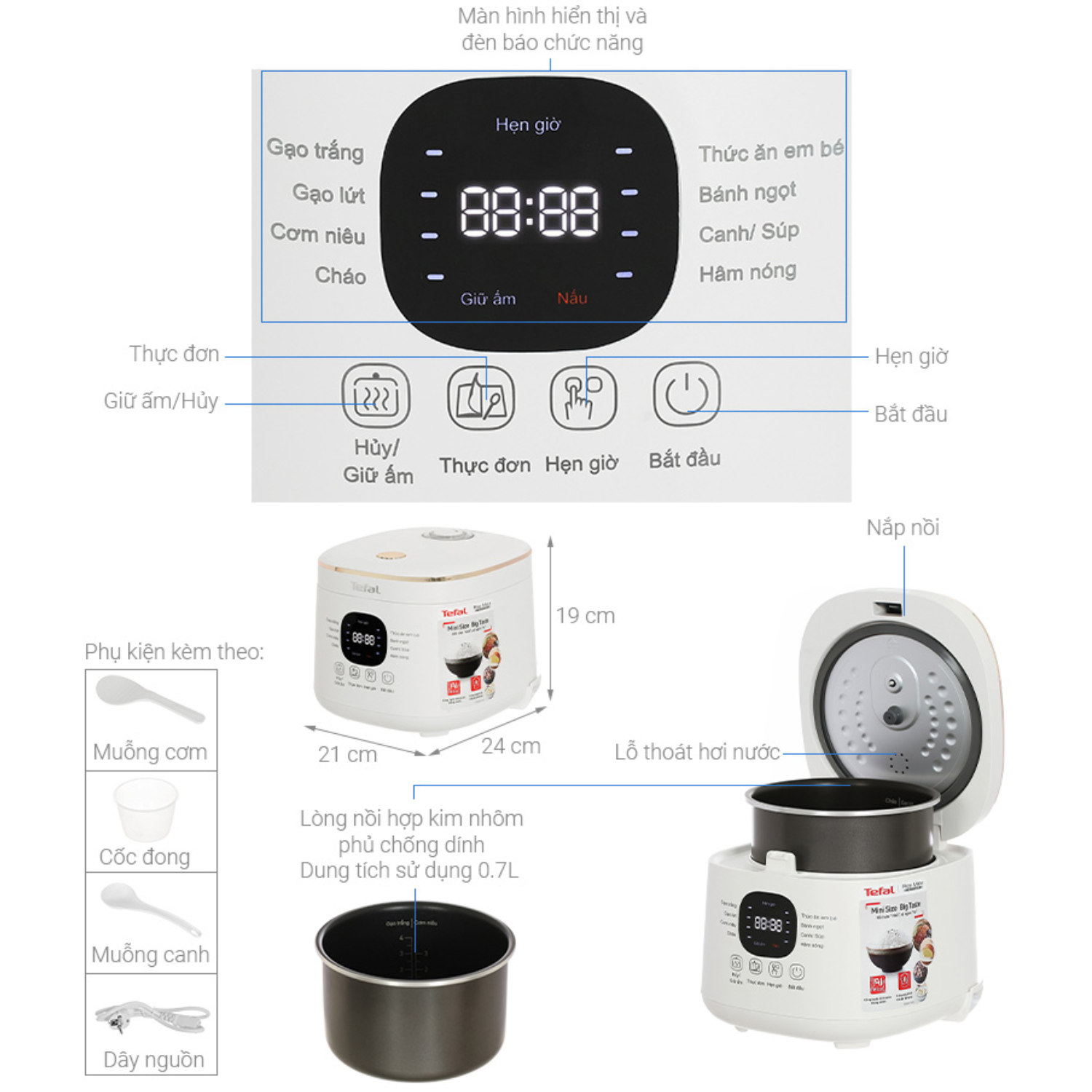 Nồi cơm điện tử Tefal RK733168 là lựa chọn hiện đại, đa năng, giúp nấu cơm ngon và các món ăn đa dạng dễ dàng, tiết kiệm thời gian cho gia đình