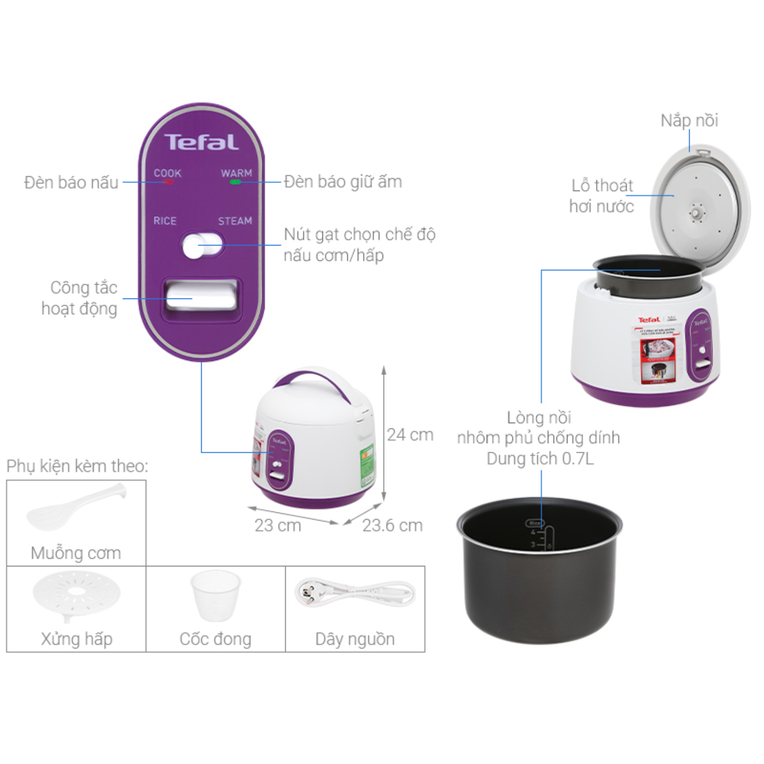 - Phụ kiện: Xửng hấp, muỗng cơm, ca đong