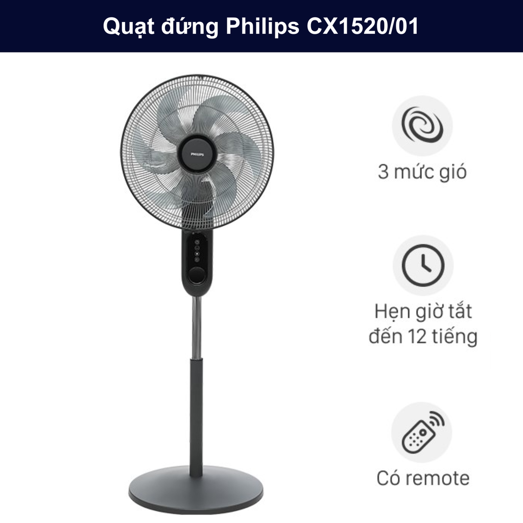 Quạt đứng Philips CX1520/01 mang đến sự tiện nghi với khả năng làm mát hiệu quả, vận hành êm ái cùng nhiều tính năng thông minh, phù hợp cho gia đình và văn phòng hiện đại.